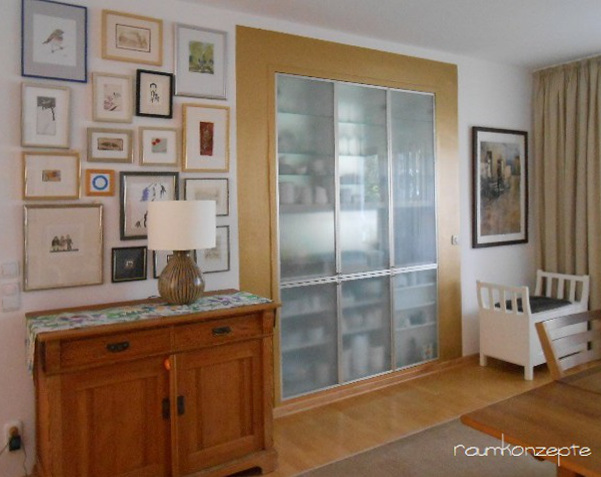 Der Einbauschrank bekam einen goldenen Rahmen und wirkt jetzt richtig edel.