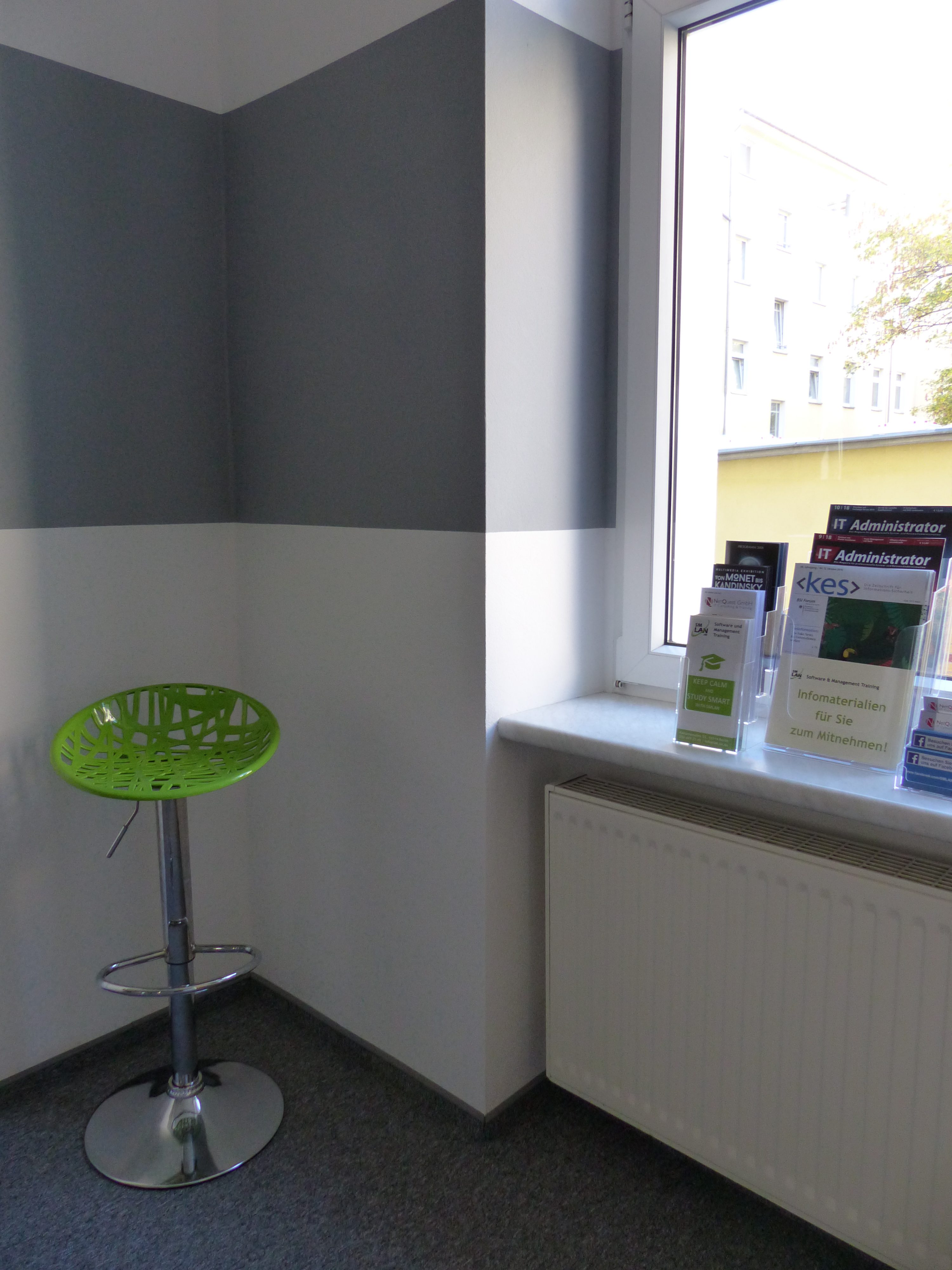 Auch die neue Gestaltung im Schulungsraum der Niederlassung Berlin sollte diesem Anspruch gerecht werden. Bei SMLAN Software & Management Training hatte der Schulungsraum seine besten Zeiten hinter sich und brauchte dringend ein Makeover. Da vorhandene Möblierung und Einrichtungsgegenstände weiter genutzt werden konnten, bestand die Aufgabe, den Raum mit einem neuen Farbkonzept ins Heute zu holen.