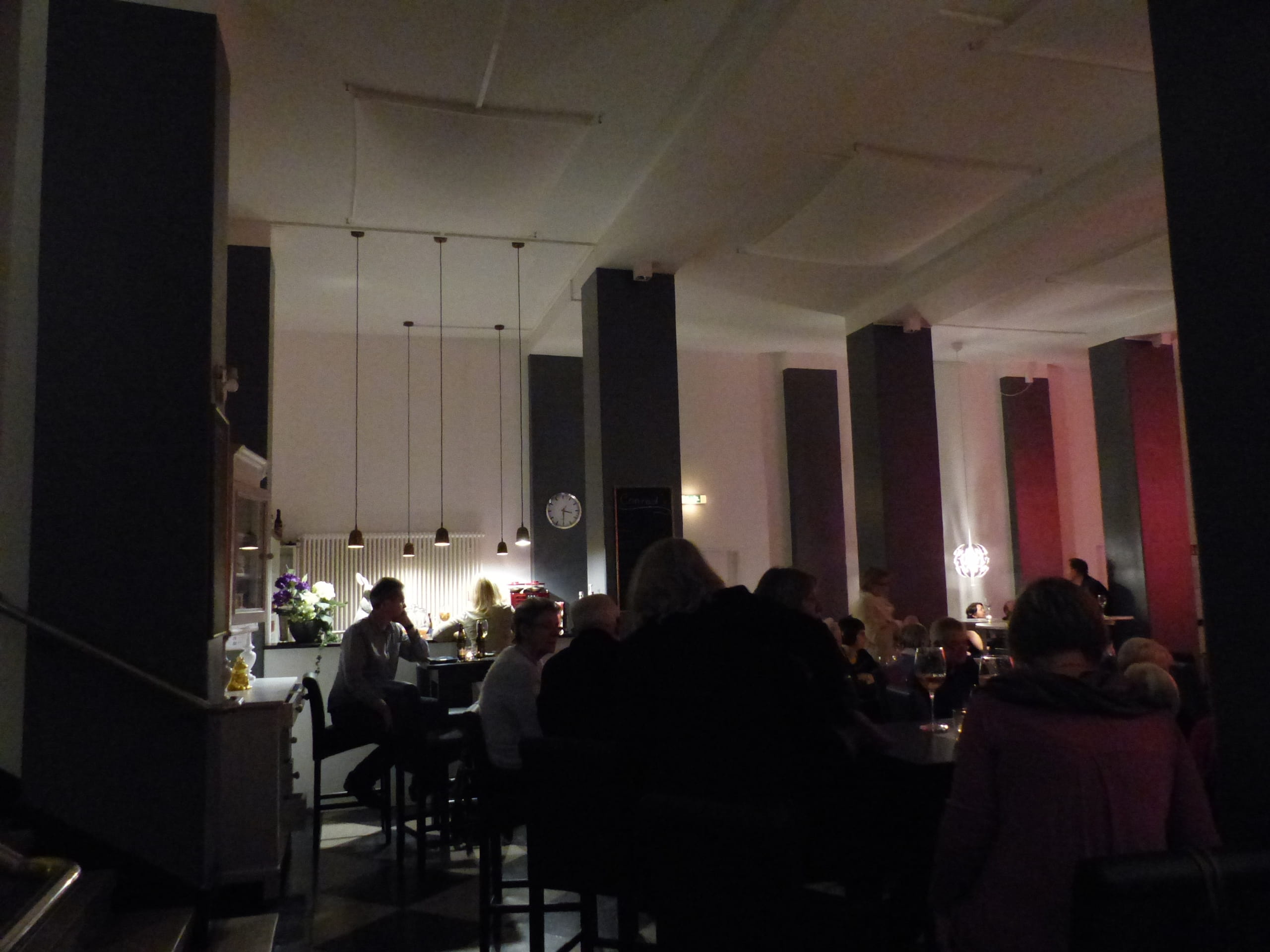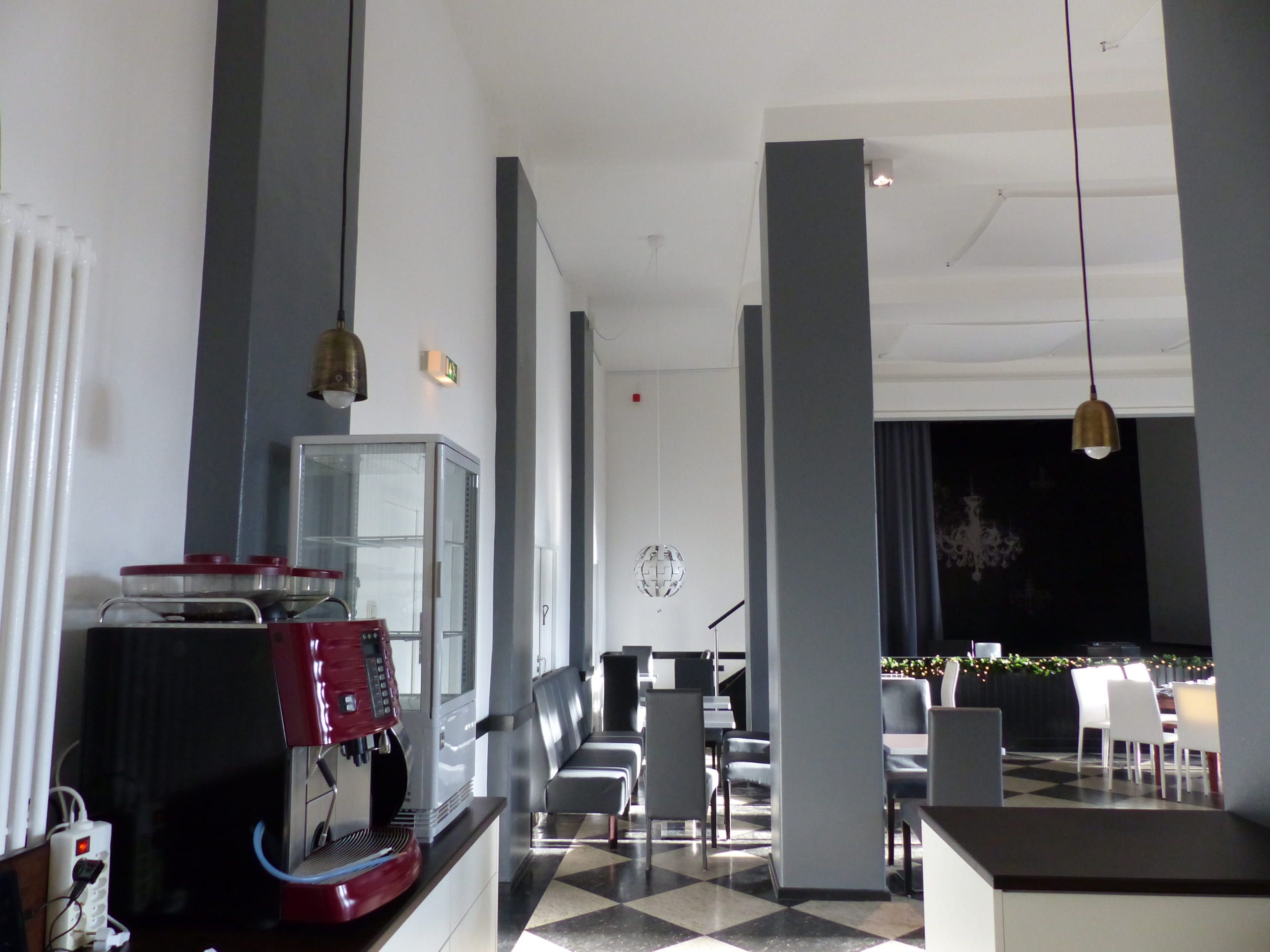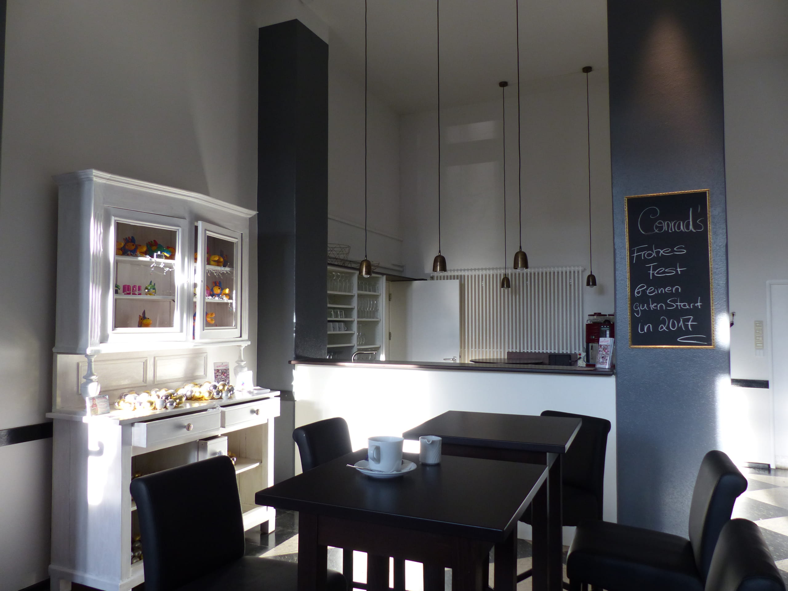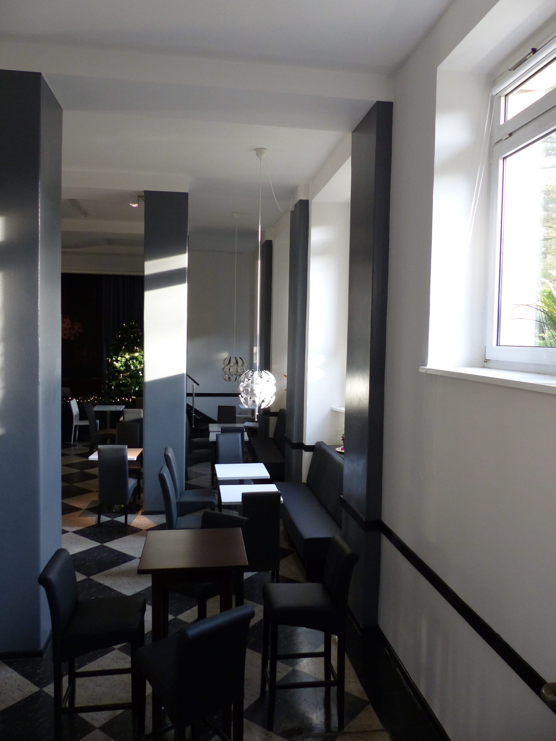 Dem anfänglichem Zweifel der Betreiber folgte der Mut für das vorgeschlagene Farbkonzept und dann die riesen Begeisterung am Ergebnis. Die eindruckvollen Säulen wurden dunkelgrau gestrichen.
