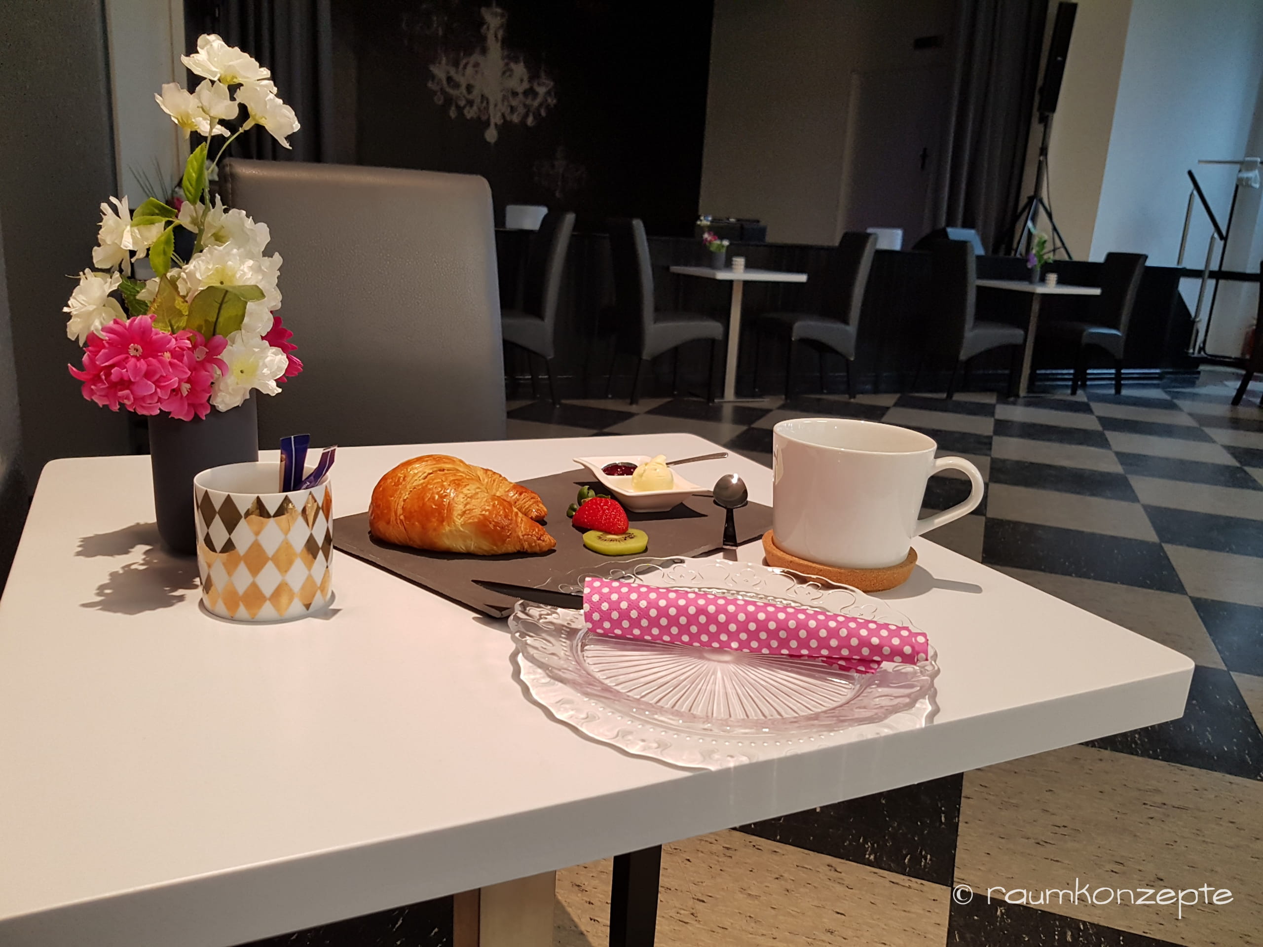 Aula Tischdeko4 nachher mit Fruehstuecksgedeck