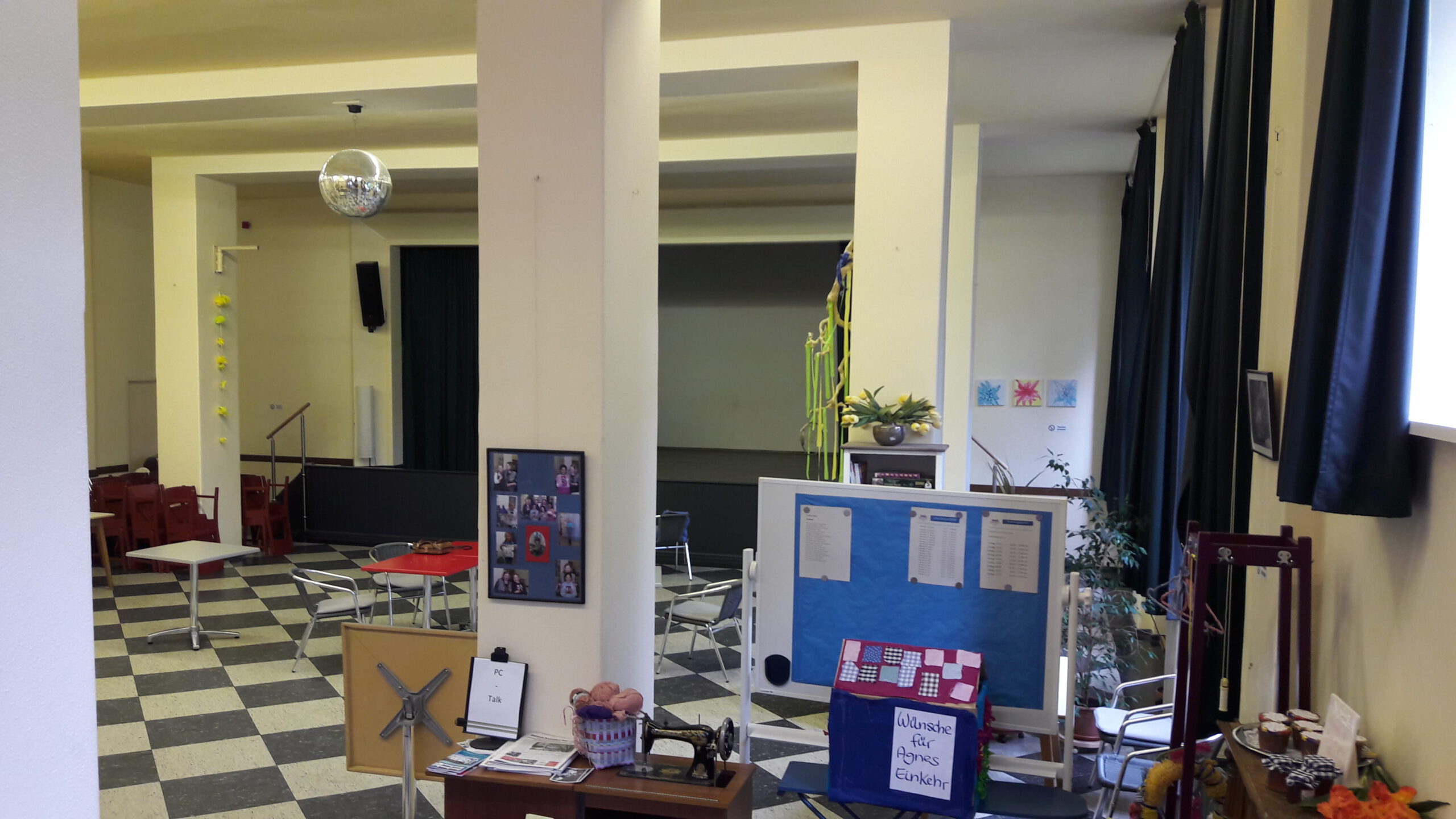 Aula links nachher mit eingedecktem Tisch