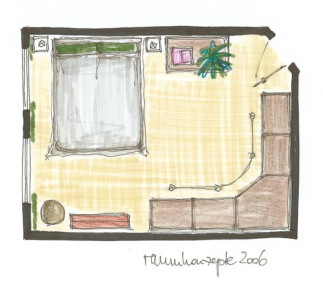 „Ihre“ und „Seine „Möbel im gemeinsamen neuen Schlafzimmer raumkonzepte Veröffentlicht am 21. September 2016 von Juana Fritsch28. Februar 2026 Vorher Dekoration mit vorhandenen Dingen. Vorher Hier wird auch am Tag gern gelesen. Vorher Das Bett wechselt die Seiten. Endlich ausreichend Stauraum! Grundriss Fotos und Skizze: raumkonzepte teilen teilen merken
