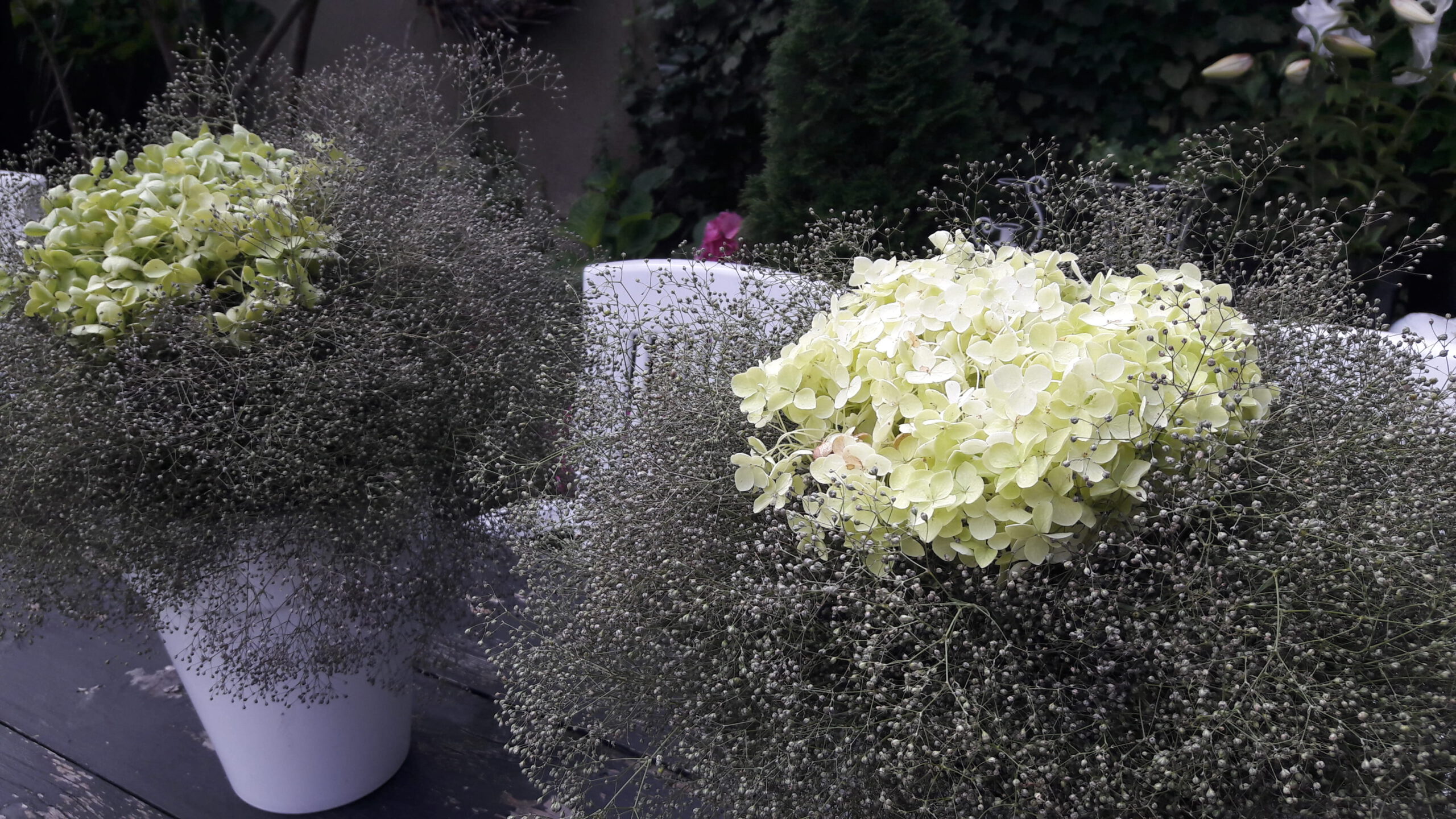 Jedes Jahr auf´s neue blühen tausende kleine Blüten in den Schleierkraut-Stauden. Sie werden von Insekten geliebt und es summt und brummt in ihren üppigen Kronen. Zu schade, um nichts damit zu machen. Sind die Blüten verblüht, dann können daraus schöne Kränze oder Sträuße gebunden werden. Sie schmücken für eine kurze Zeit den Garten.