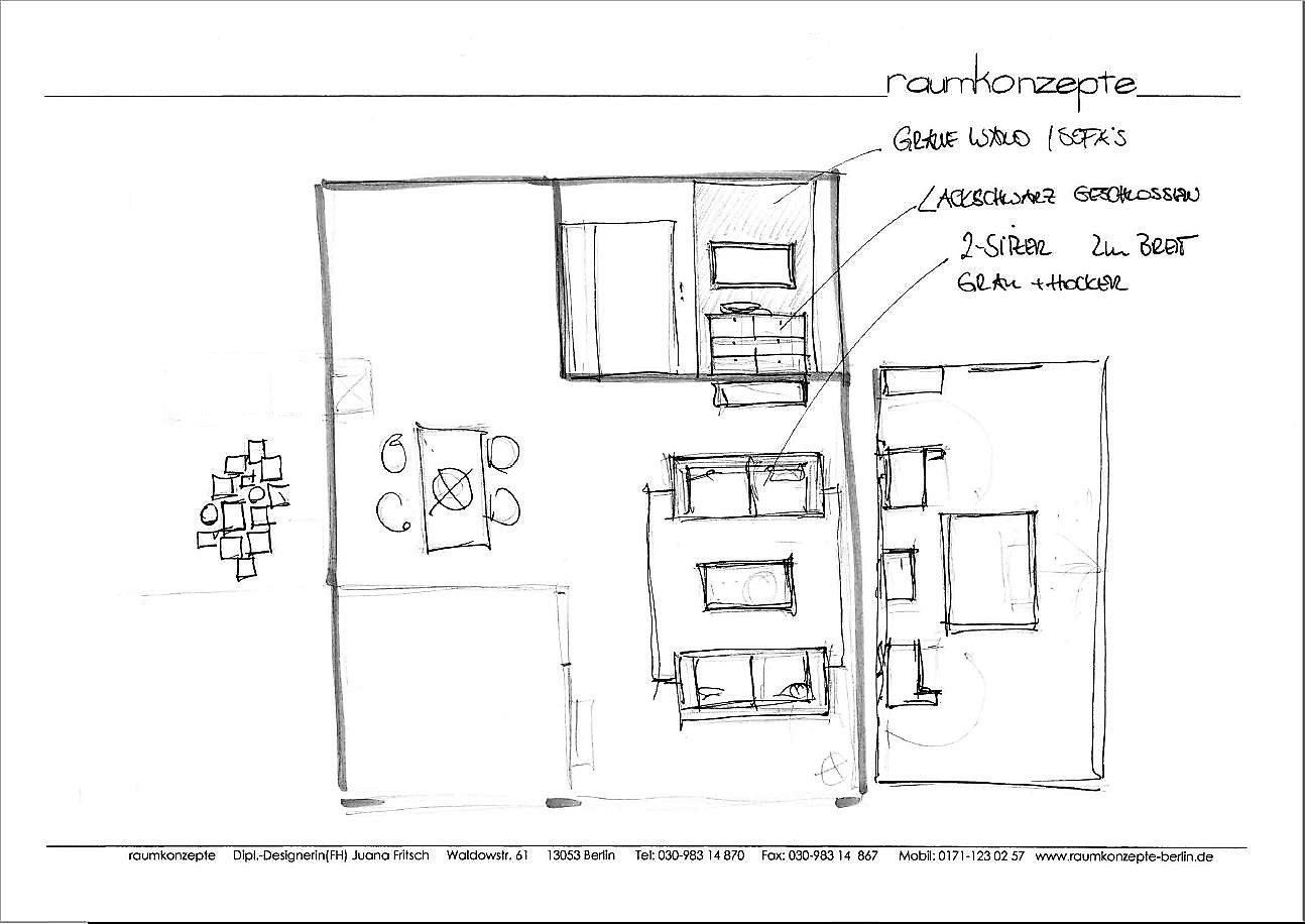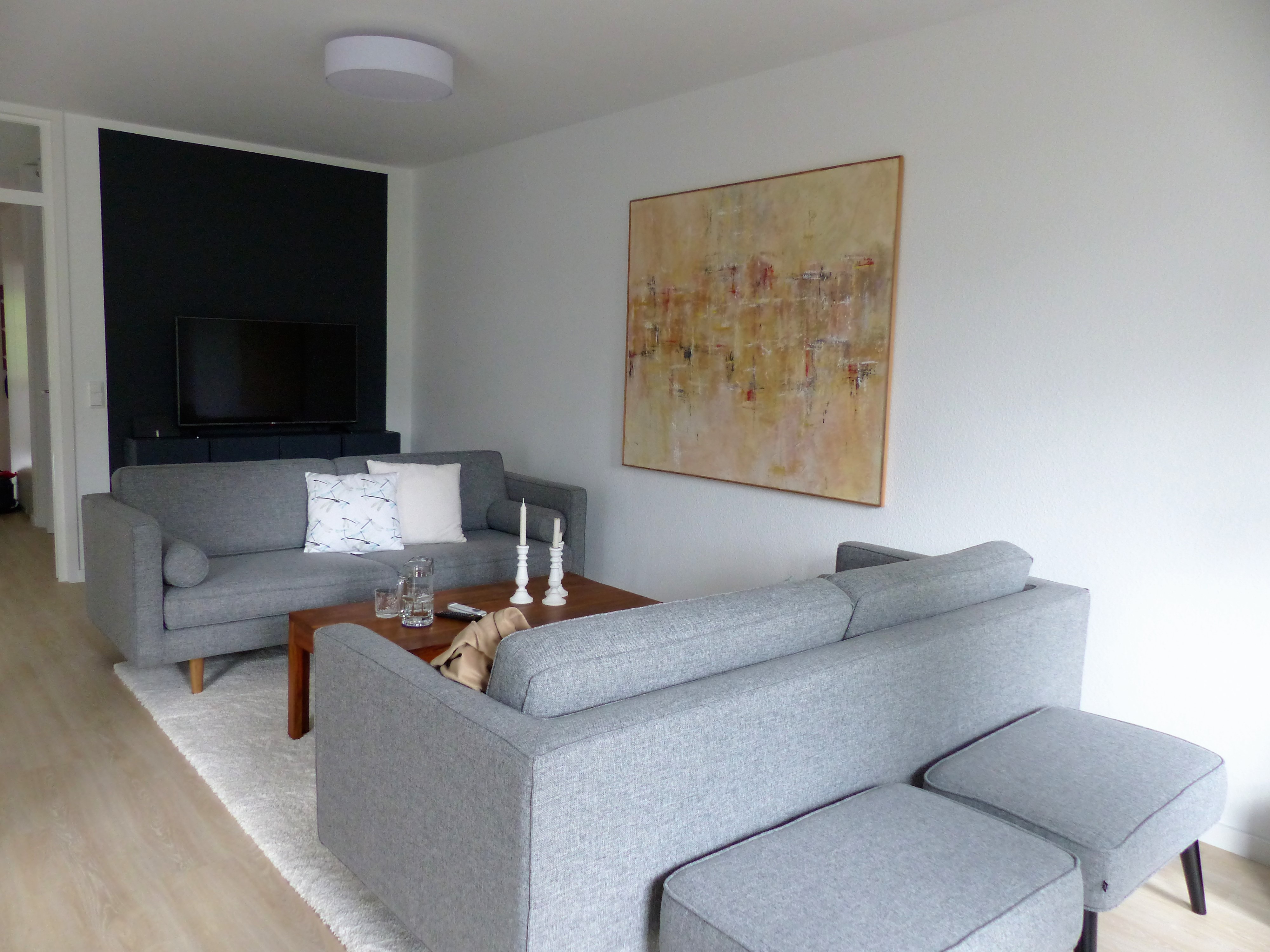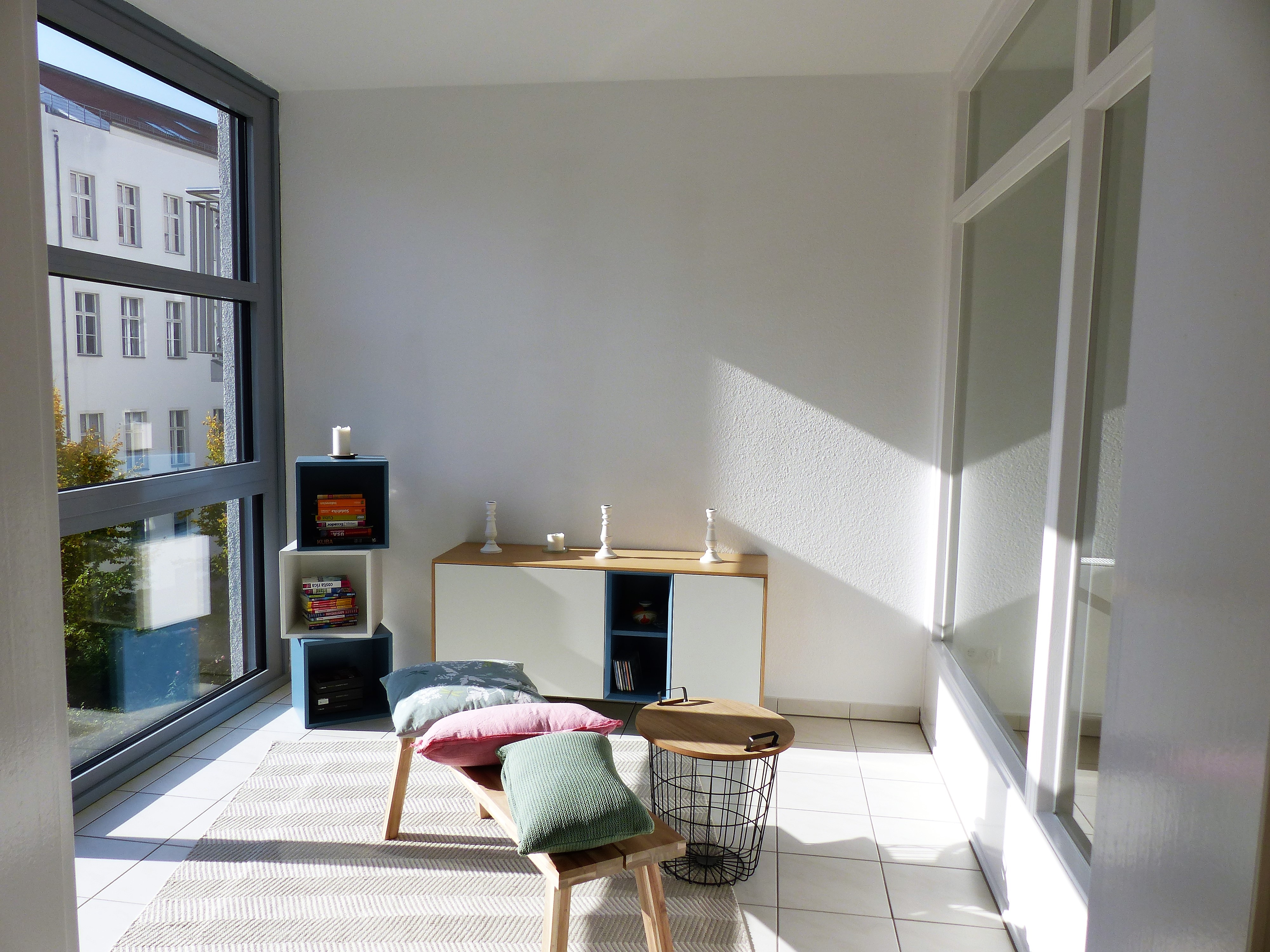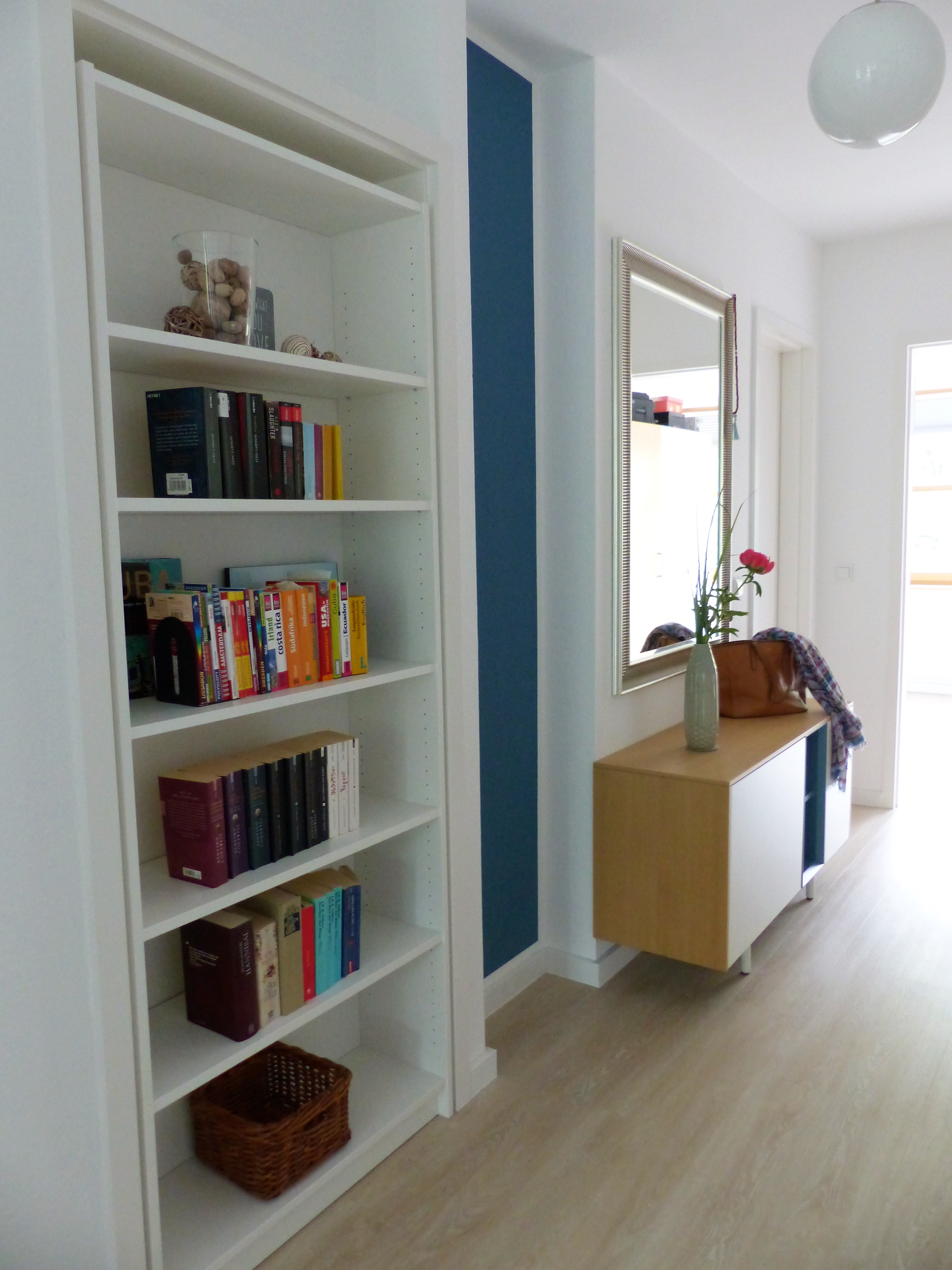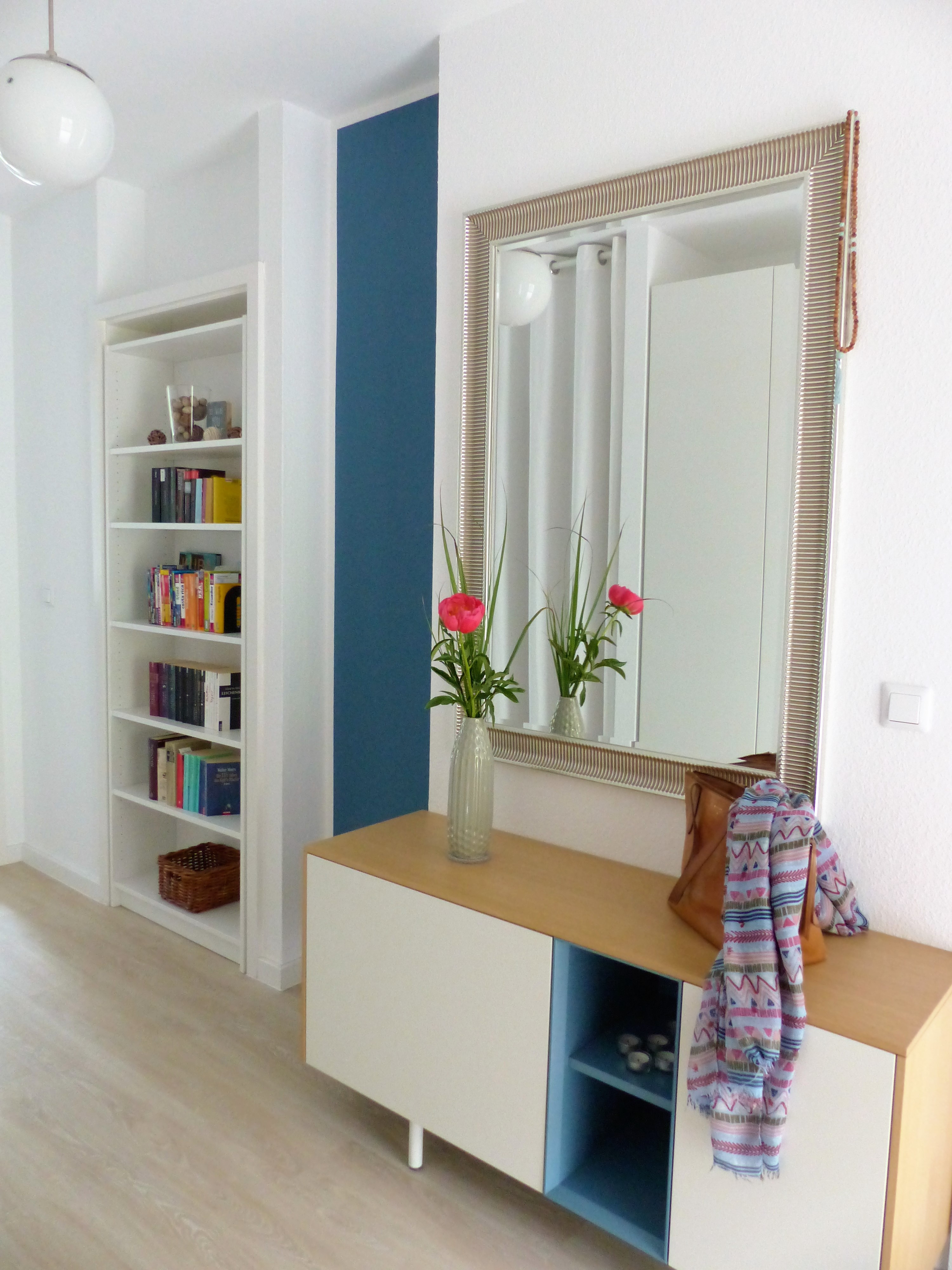 Es sollte ein Neuanfang werden, in einer schönen hellen Wohnung. Deshalb fanden auch nur wenige Möbel einen Platz, allerdings nur für kurze Zeit. Leicht und hell sollte es sein, mit wenigen, ganz gezielt ausgesuchten Stücken, die die vorhandenen gut ergänzen. Während einer mehrstündigen Einrichtungsberatung wurden dann für alle Bereiche die Lösungen gefunden und durch Frau S. selbstständig umgesetzt. Das Ergebnis spricht für sich, ein einladender Flur und ein leicht möbliertes Wohnzimmer.