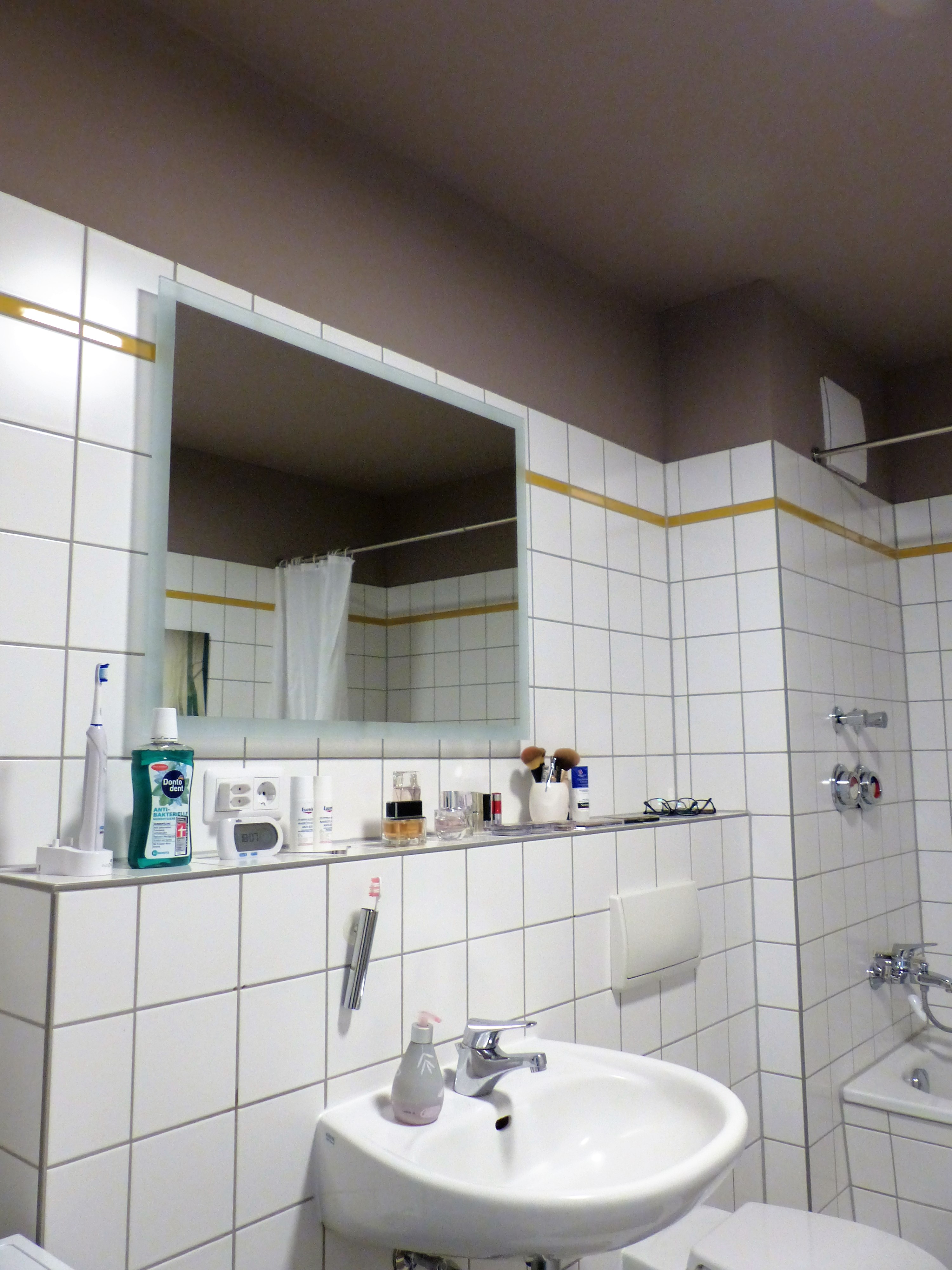 Der schöne Spiegel vergrößert den schmalen Flur und sorgt auch für ein bisschen Grandezza.
