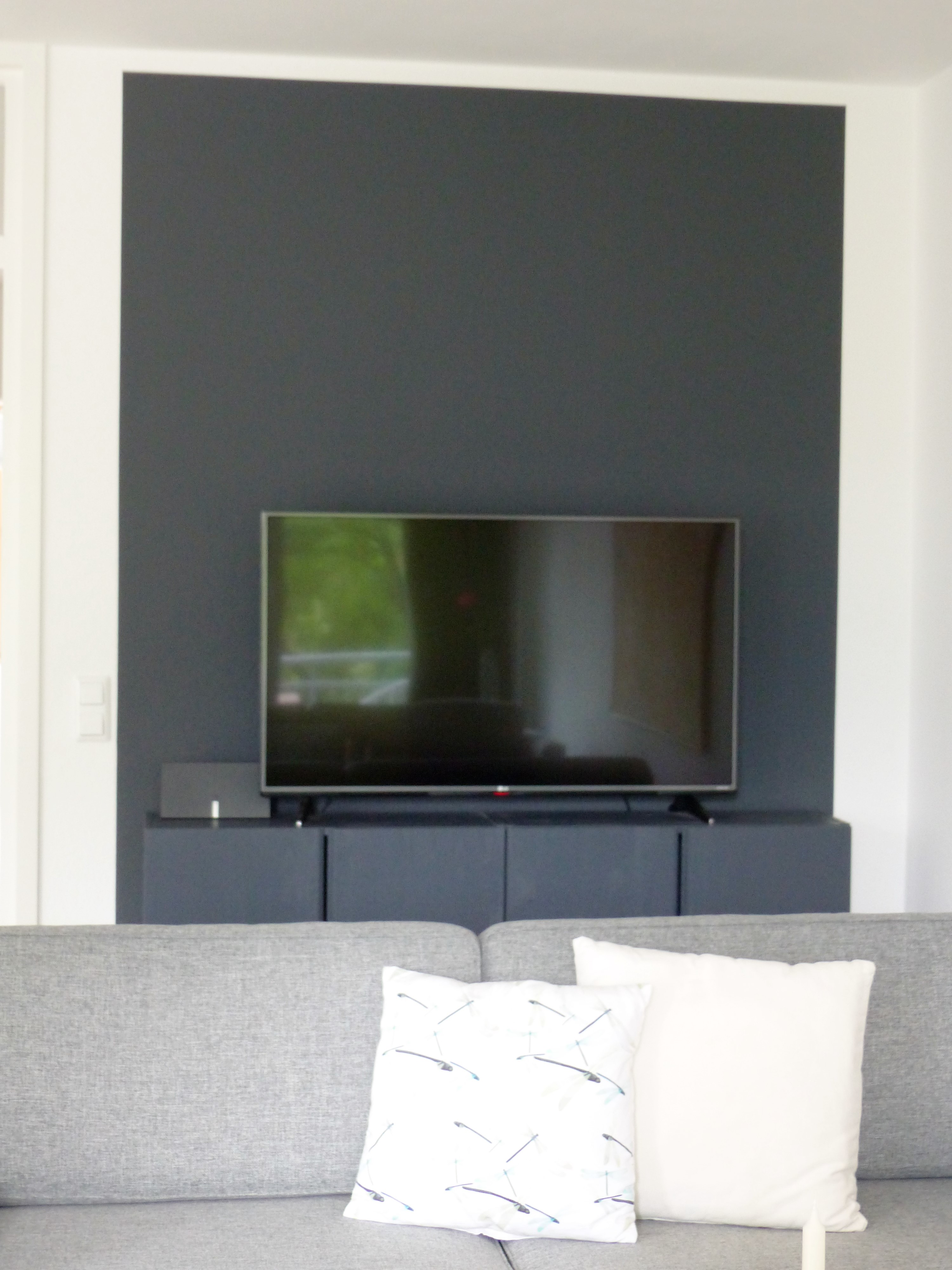 Statt eines preisintensiven Sideboards entschied sich Frau S. für einfache Schränke, die im Farbton der Wand gestrichen wurden. Nicht der Preis entscheidet über die Wirkung. Vielen Dank für die tolle Umsetzung dieser mutigen Idee!